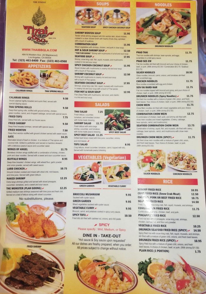 Welcome to Thai Original BBQ, a hidden gem nestled in the heart of Los Angeles at 484 N Western Ave. This culinary haven offers a vibrant menu that celebrates authentic Thai BBQ flavors. Guests rave about the Thai BBQ Spare Ribs, tender and succulent, accompanied by a special BBQ honey sauce, and the Garlic Short Ribs, cooked to perfection with a spicy kick.